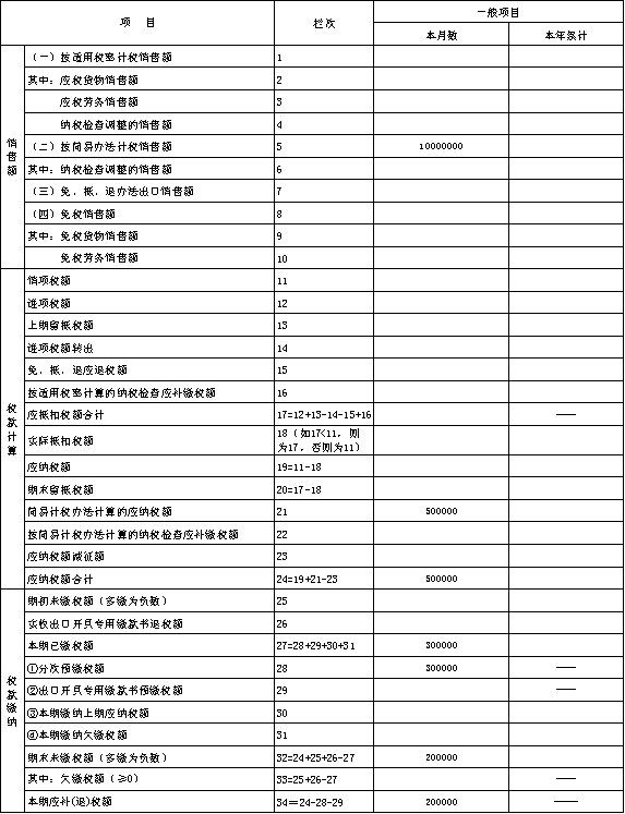 (3)填写《增值税纳税申报表(一般纳税人适用)》主表