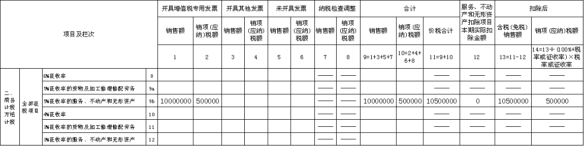 (9)填写《营改增税负分析测算明细表》