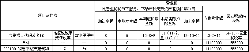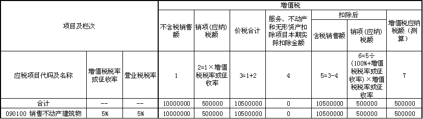 (5)填写《营改增税负分析测算明细表》