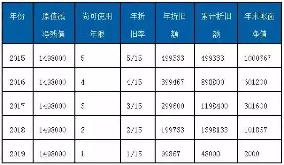2、年数总和法:是指将固定资产的原值减去预计净残值后的余额,乘以一个以固定资产尚可使用寿命为分子、以预计使用寿命逐年数字之和为分母的逐年递减的分数计算每年的折旧额的一种计算方法。计算公式如下: