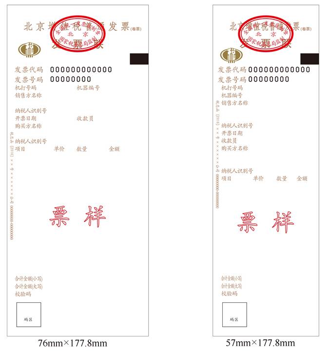 增值税普通发票(卷票)为定长发票。发票宽度有76mm、57mm两种,长度固定为177.8mm。