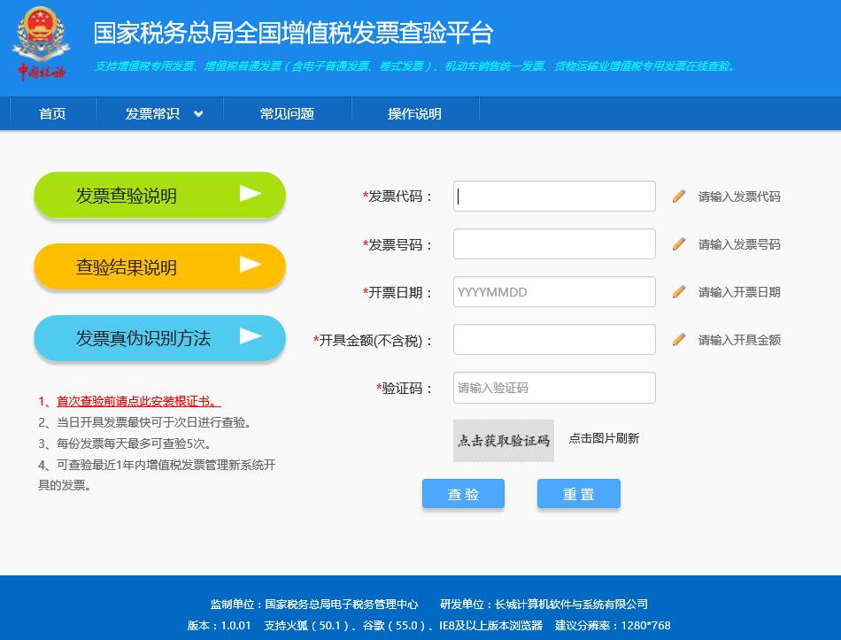 自2017年1月1日起,取得增值税发票的单位和个人可登陆全国增值税发票查验平台(https://inv-veri.chinatax.gov.cn/),对新系统开具的增值税专用发票、增值税普通发票、机动车销售统一发票和增值税电子普通发票的发票信息进行查验。单位和个人通过网页浏览器平台首次登录平台,应下载安装根证书文件,查看平台提供的发票查验操作说明。