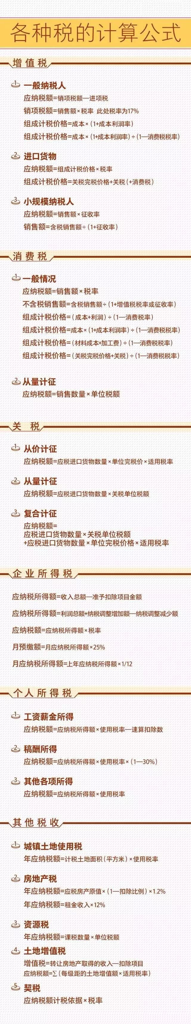 收藏!税法有税种计算公式大全,提笔忘公式的会计们必收!